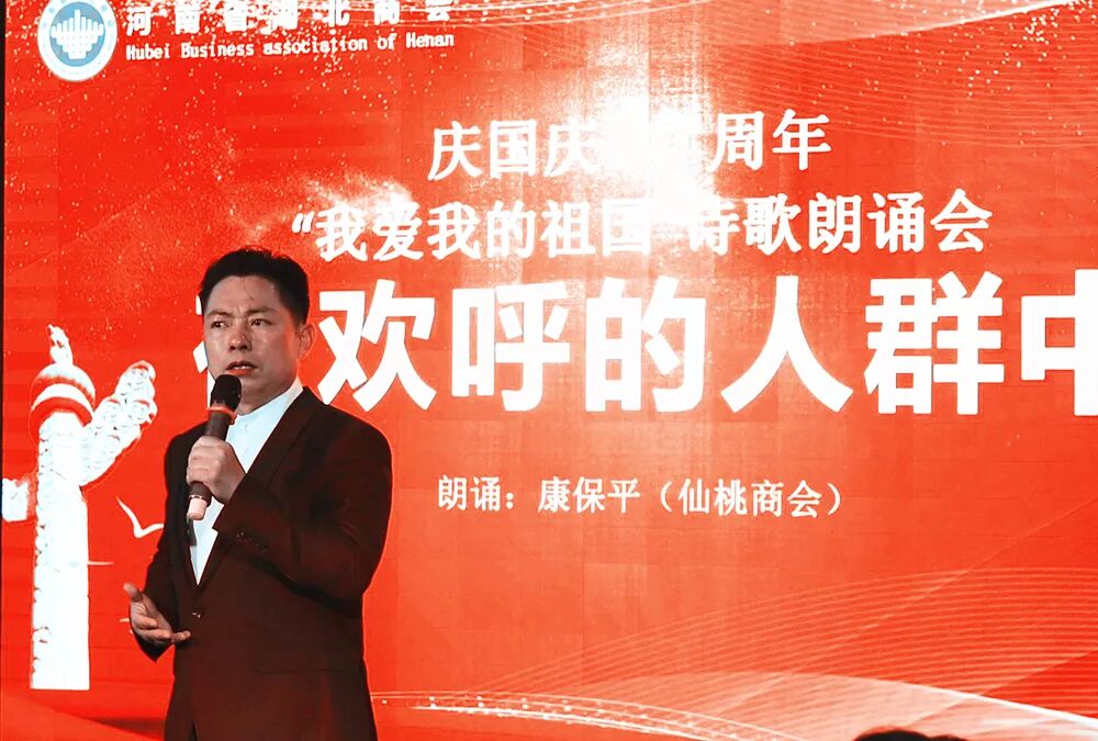 70年风雨兼程,70年春华秋实。中华人民共和国即将迎来70华诞。为纪念建国70周年,展现在豫楚商风貌及家国情怀,进一步增强商会凝聚力,在本月轮值会长执行会长张棕仁、副会长雷双平、范国举精心策划组织下,举办了“河南省湖北商会庆国庆70周年‘我爱我的祖国’诗歌朗诵会暨三届二十三次会长办公会”。会长许锐、执行会长张棕仁等商会领导班子成员、商会会员及参加诗歌朗诵会的各公司代表共80余人参加了本次活动。仙桃商会康保平作为特邀嘉宾与秘书长罗忠慧共同主持了庆国庆70周年“我爱我的祖国”诗歌朗诵会。