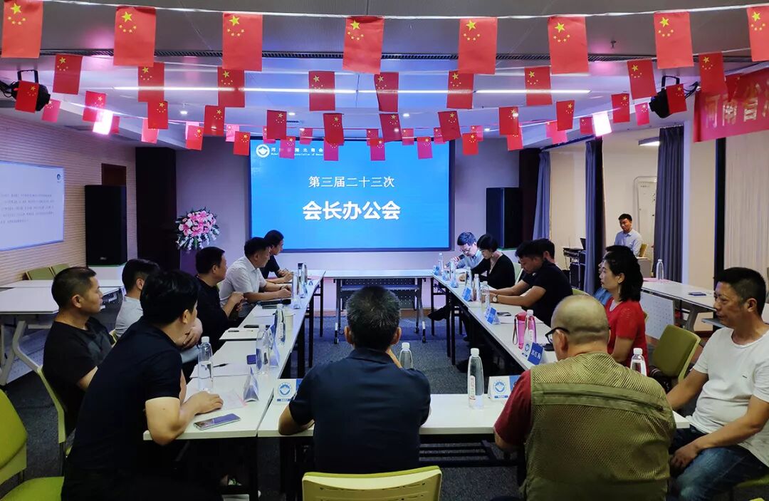 最后,商会召开了三届二十三次会长办公会。会议听取了常务秘书长邵运清对9月份的工作总结及10月份工作安排,并就年会的筹备提出意见,会议决定成立年会筹备工作6人小组,张棕仁担任组长、赵艳兵为副组长、邵运清、罗忠慧、王红星、郭红梅为筹备组成员,全权负责年会筹备;执行会长张棕仁就商会平台建设发展问题作专题讲话;会长许锐作总结讲话。